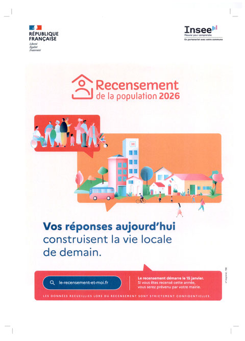 Le recensement de la population de notre commune va avoir lieu du