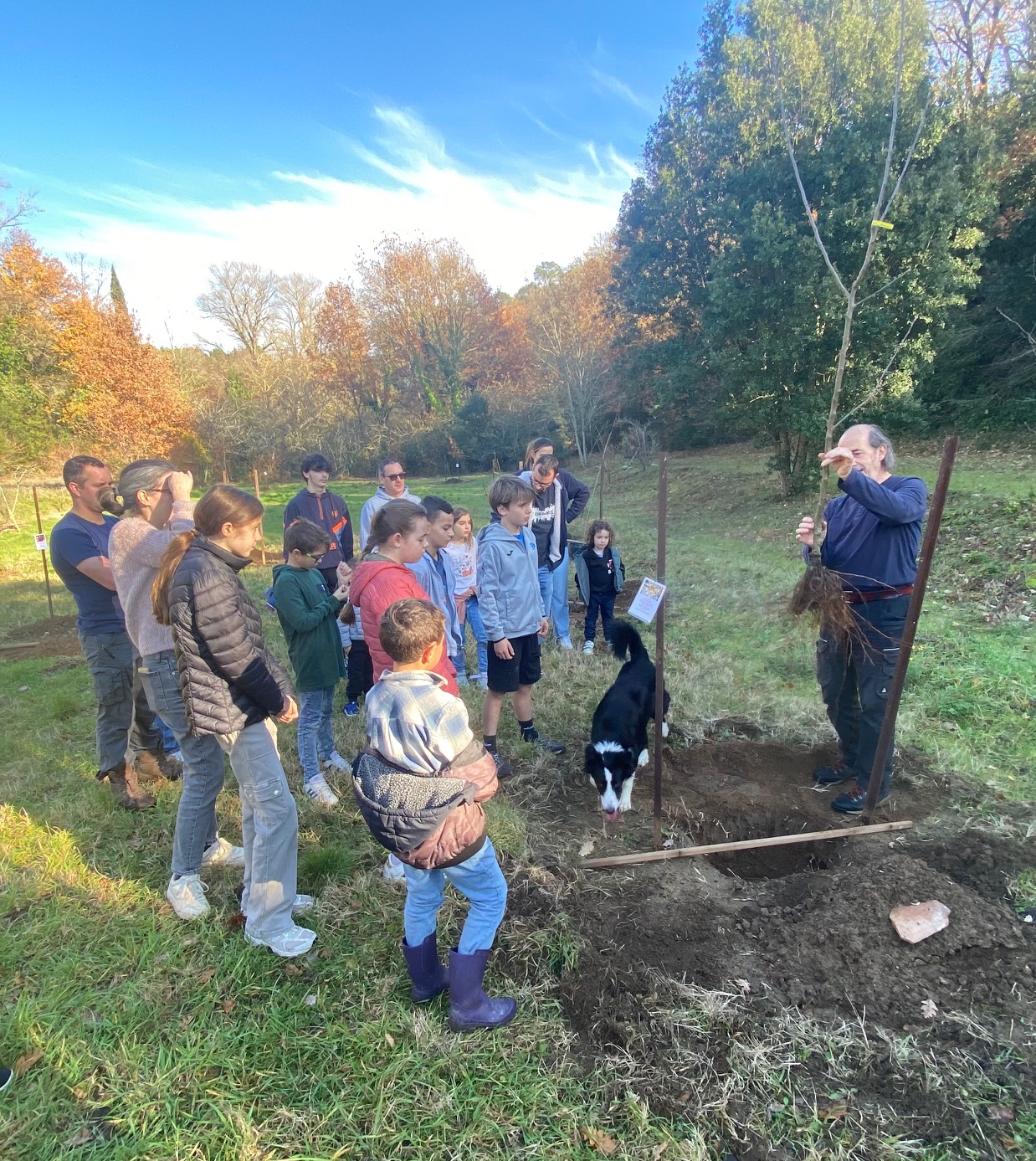 Le coup d’envoi pour la création d’un verger pédagogique partagé dans l’hort de St Martin a été donné ce samedi 13 Décembre. Les quinze enfants du village, épaulés par les parents et amis, ont planté chacun leur arbre fruitier, pommier, cerisier, prunier, figuier, cognassier, actinidia etc. des scions d’un ou deux ans en provenance des Pépinières de la Montagne Noire. Le temps était de la partie pour faire de cette journée un beau moment de rencontre et de partage.